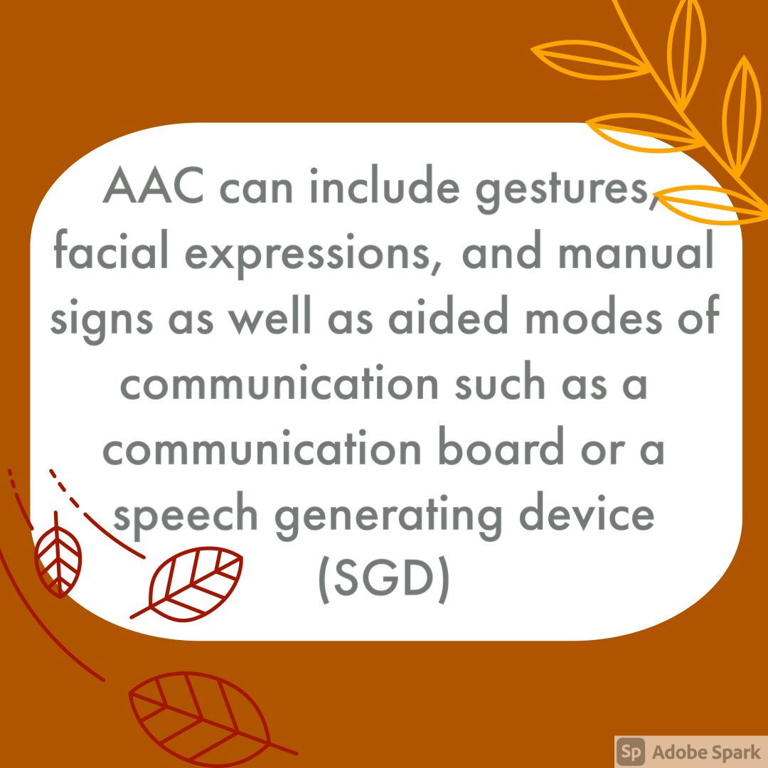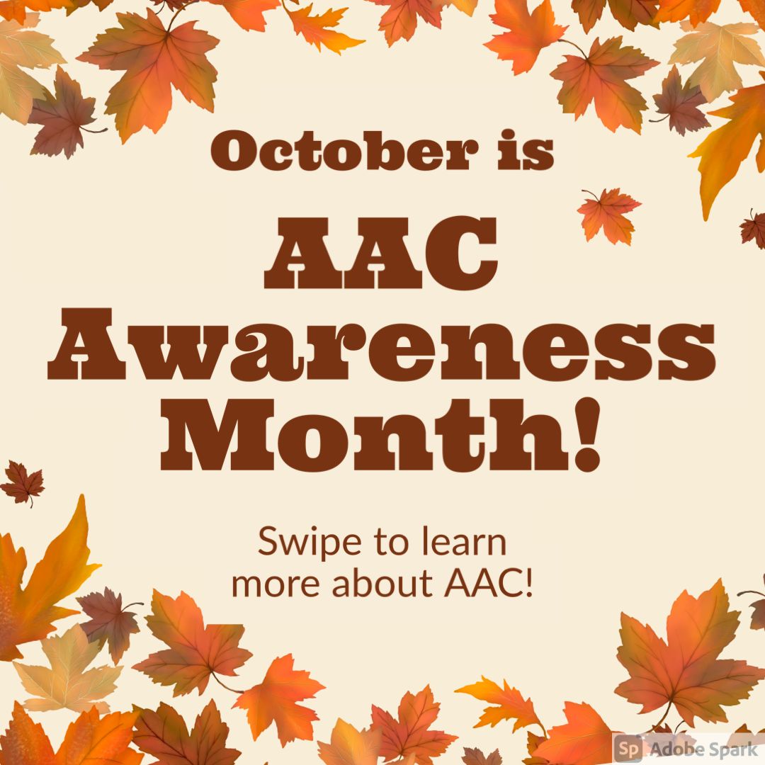 I love October! Not only is autumn my favorite season, but it’s also the month we celebrate AAC (although if you’re reading this, and you’re like me, you probably celebrate AAC all year long). Each October I ask my clinical team of students to complete a project in honor of AAC Awareness Month. In the past, they have created educational videos, infographics to share around our building and on social media, and even an AAC training module for hospital volunteers. These are not graded assignments, but a chance to apply what they have learned in a fun and creative way while also spreading awareness through an act of service. I offer them a few examples and suggestions but then let them take the reins together. This year I wanted to spread my team’s project a little further. They have designed shareable materials that you can use too! Below you will find their brief explanations and materials.